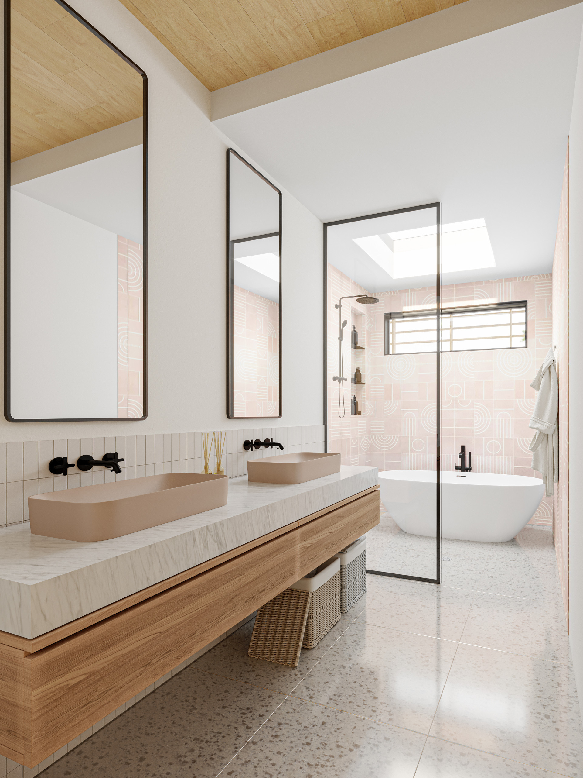 75 moderne badezimmer mit holzdecke ideen & bilder – august 2025